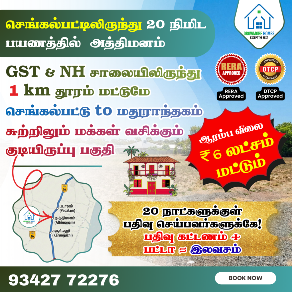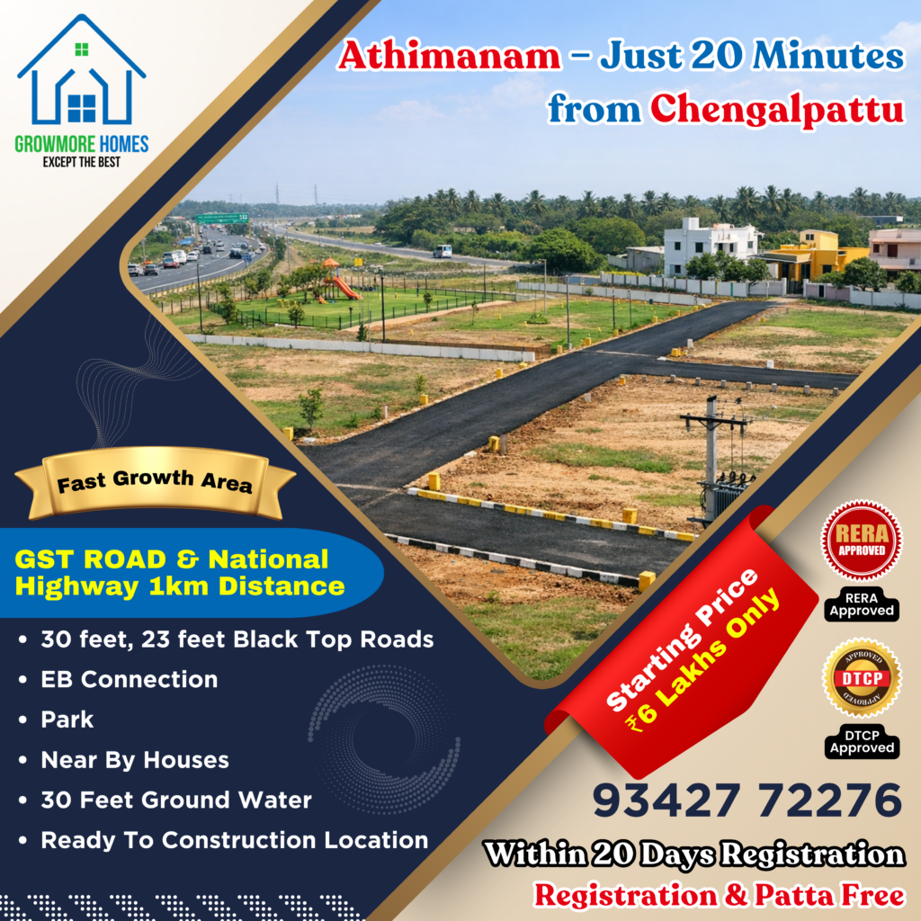 With a strong presence across Chengalpattu and emerging suburban corridors of Chennai, GrowMore Homes specializes in CMDA, DTCP & RERA approved layouts, ensuring every project meets statutory standards and customer expectations. Our developments are strategically located with excellent road connectivity, future growth potential, and essential infrastructure.